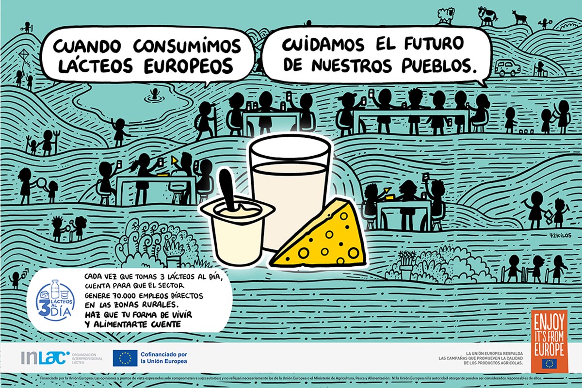 InLac presentó el pasado 6 de octubre de 2025 su nueva campaña europea “Cuenta con los lácteos”, en colaboración con el artista @72kilos. Durante los próximos tres años, la iniciativa promoverá el consumo de tres lácteos al día como hábito saludable y sostenible, reforzando el compromiso del sector con el bienestar animal, el empleo rural y el medio ambiente. El acto de lanzamiento reunió a representantes del sector, expertos académicos y al propio creador de la campaña, con ponencias, un debate sobre sostenibilidad y la firma de las creatividades.